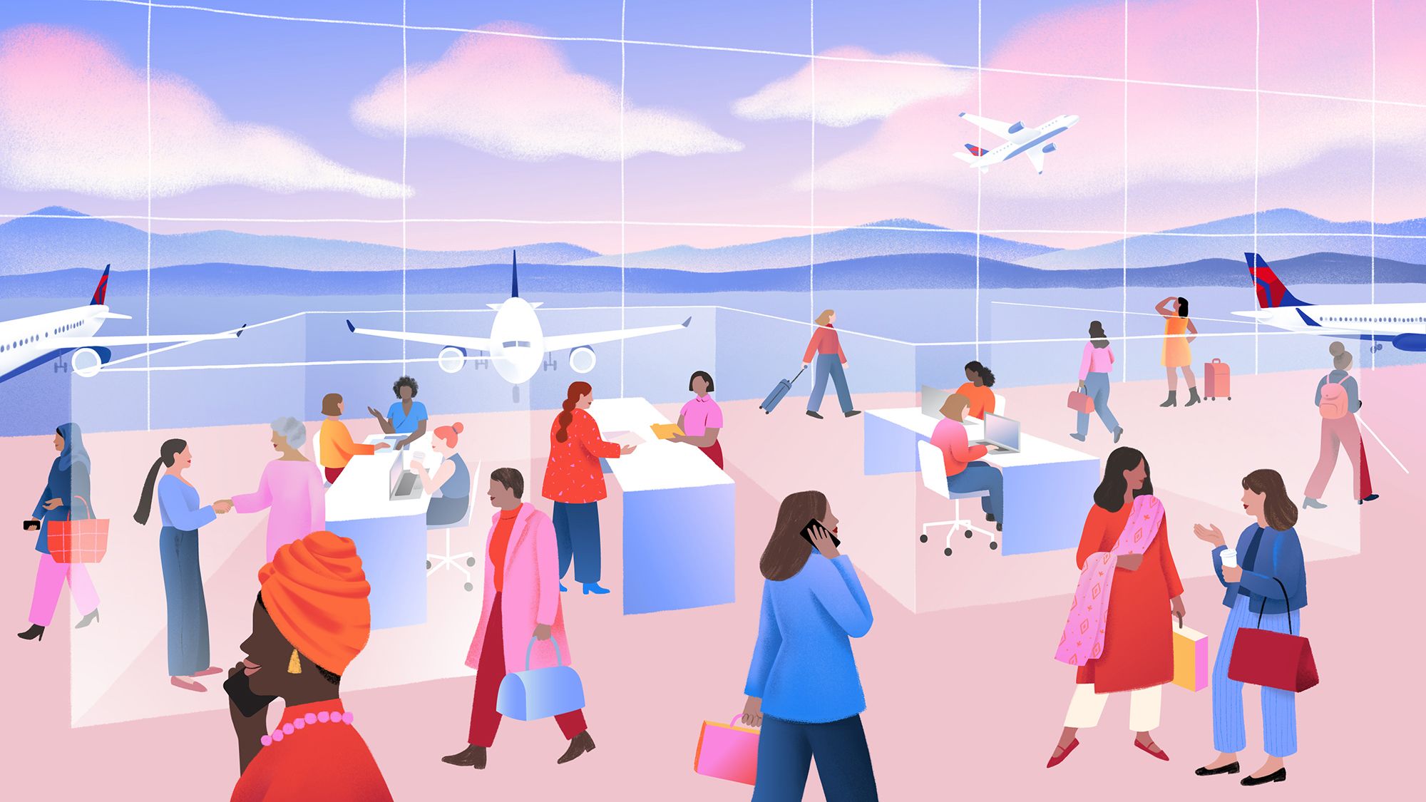 Illustrations for a partnered campaign exploring the challenges and opportunities women face in their careers and lives.